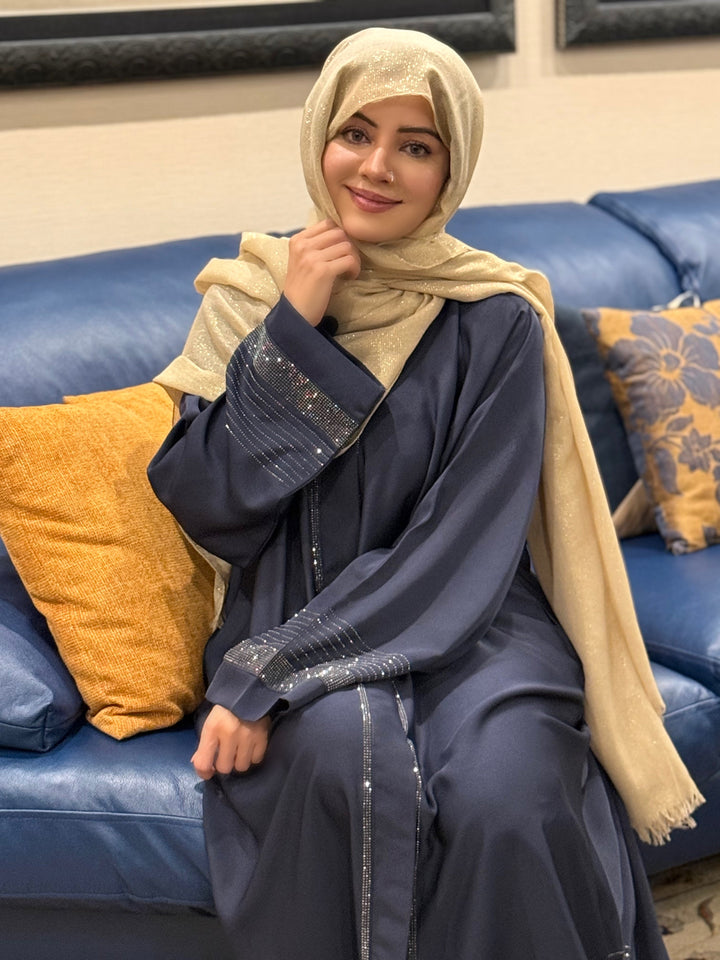 Elegant Navy Blue Abaya with DMC Stone Work (Scarf Not Included) – Haya by Rabi