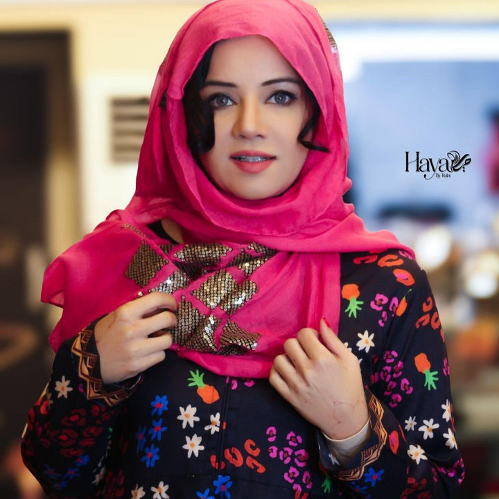 Introducing the "Black Dhanak Frock 1 Pc" from Haya by Rabi's winter collection, a masterpiece designed by the renowned artist Rabi Pirzada. Elevate your style quotient with this chic and versatile frock, where sophistication meets a burst of color.