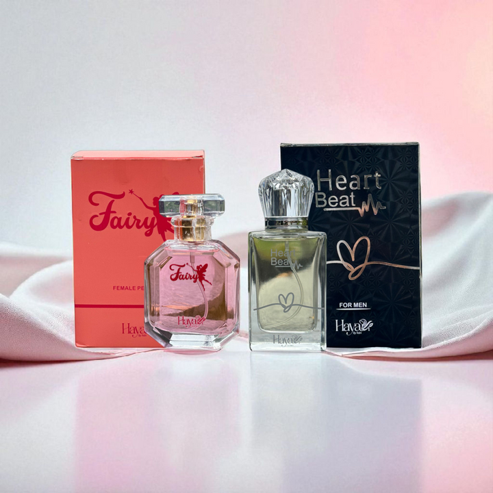 This perfume bundle brings you the charm of Fairy Perfume (for women) and the confidence of Heartbeat Perfume (for men) in a premium 50ML + 50ML duo. Whether you’re looking for the best couple perfume set in Pakistan, a thoughtful gift, or simply a fragrance duo for everyday wear, this set is crafted to impress.