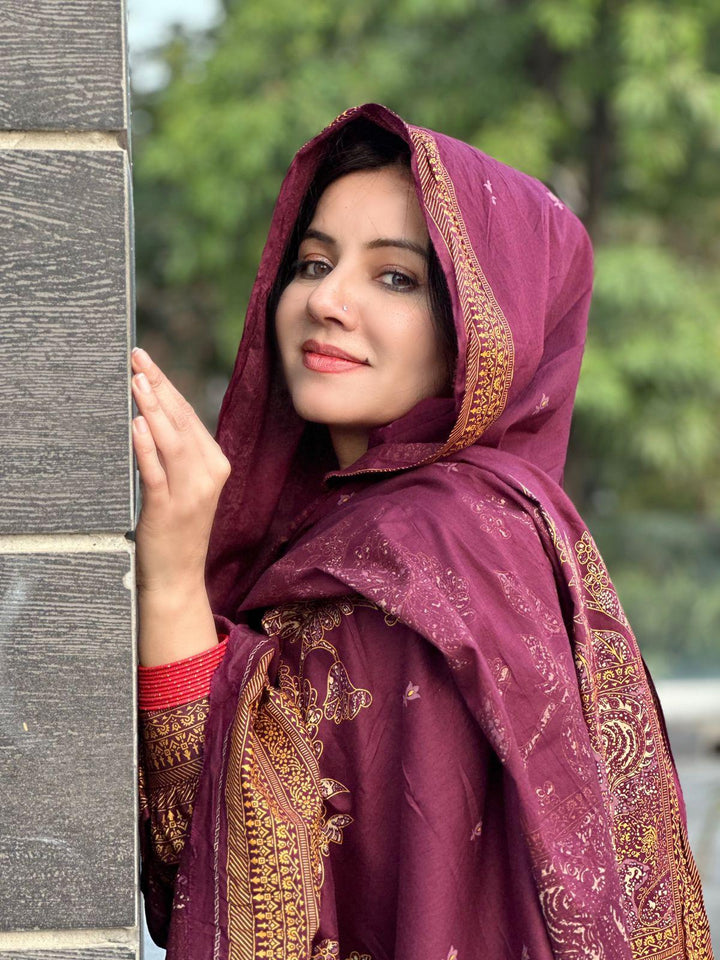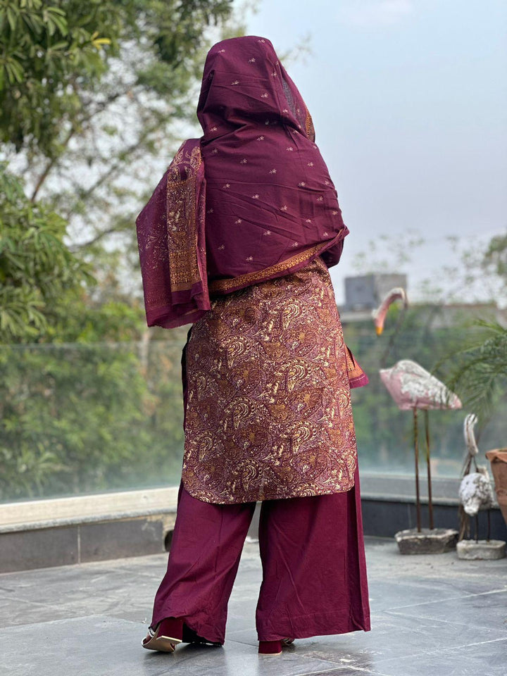 Paired with a matching maroon shalwar, this ensemble strikes the perfect balance between fashion and functionality. The relaxed fit of the shalwar allows for unrestricted movement, making it ideal for all your summer activities.